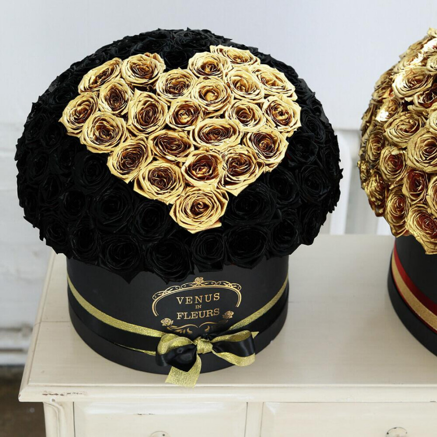 Букет из 201 черной и золотой розы в коробке в Полевском
