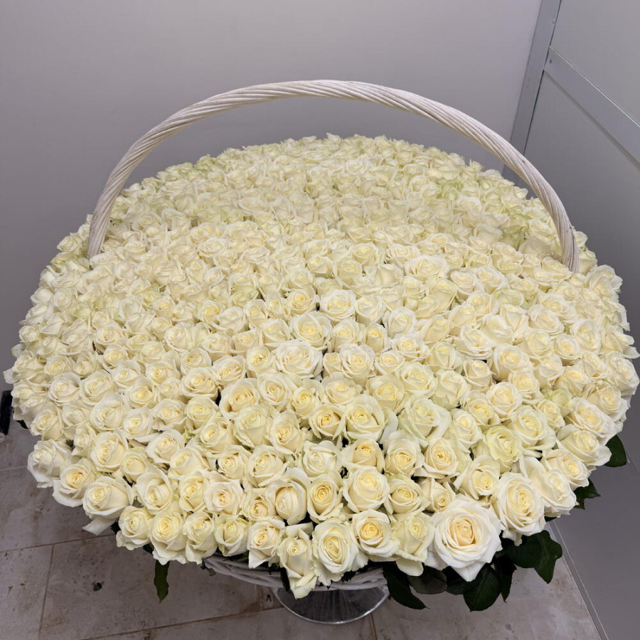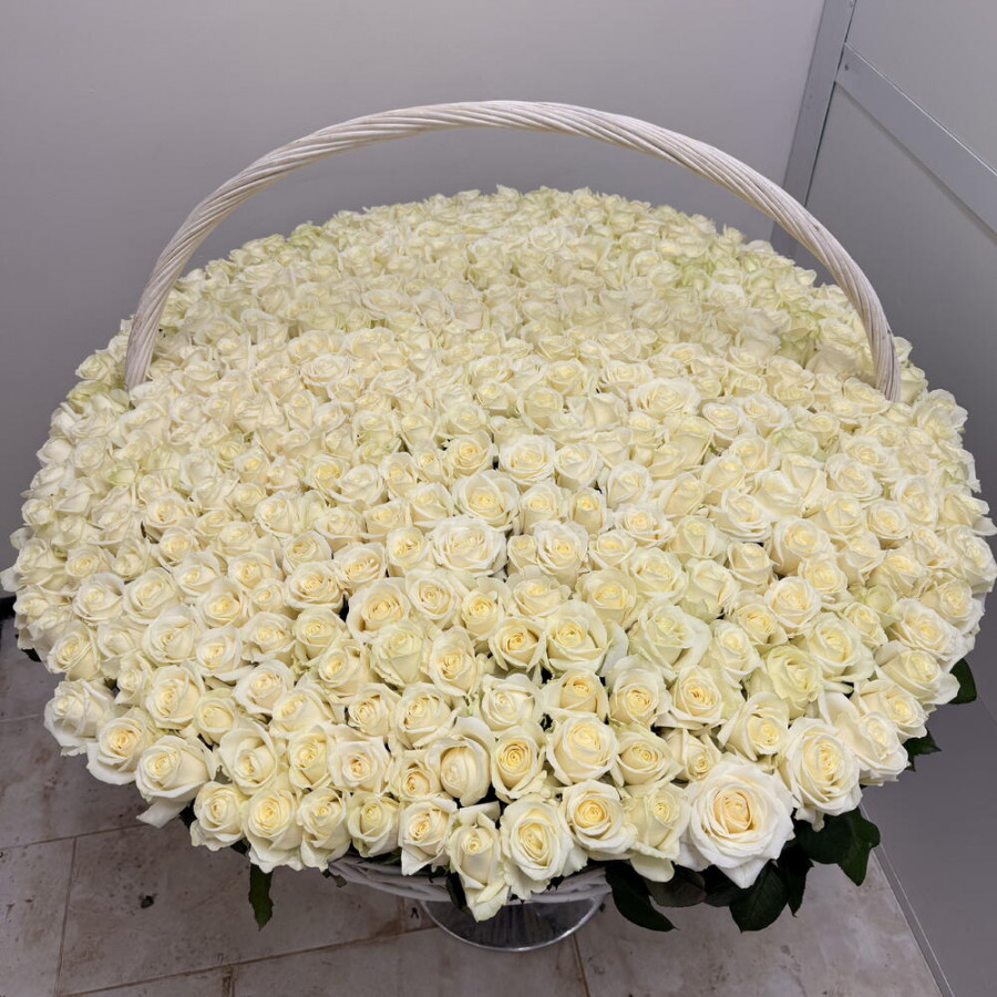 Букет из 501 белой розы в корзине «Нежность» фото 4