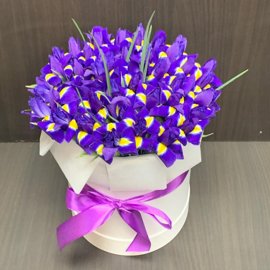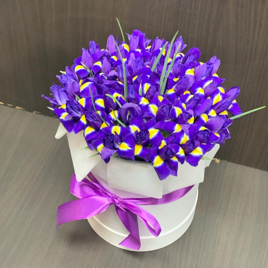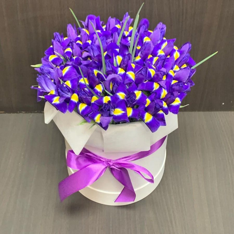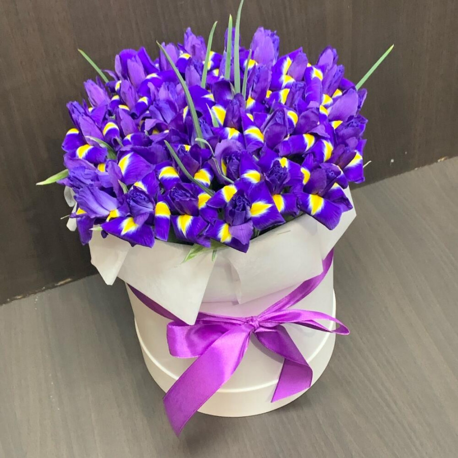 51 фиолетовый ирис в шляпной коробке в Полевском