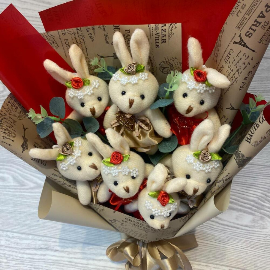 Букет из игрушек «Зайки» 7 шт. в Полевском