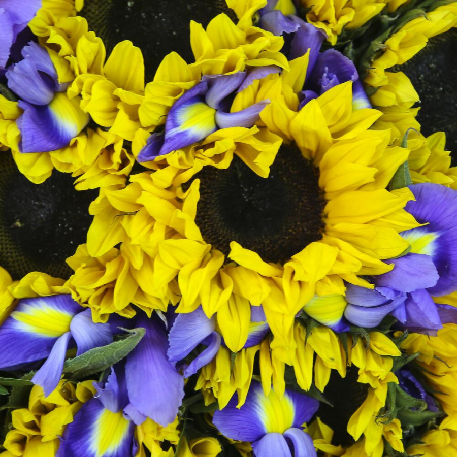 Букет из подсолнухов и ирисов