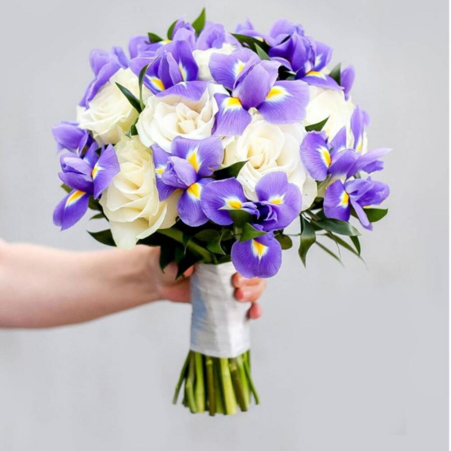 На фото букет невесты из белых роз и ирисов. В составе: ирис 17 шт, роза 12 шт, рускус 8 шт, атласная лента 1 шт, . Все цветы свежие и ароматные, букет красиво оформлен и отлично подходит для подарка. Доступна доставка цветов или самовывоз.