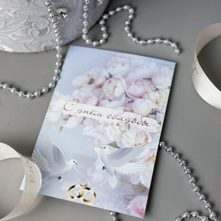 На фото открытка «с днем свадьбы». В составе: . Все цветы свежие и ароматные, букет красиво оформлен и отлично подходит для подарка. Доступна доставка цветов или самовывоз.
